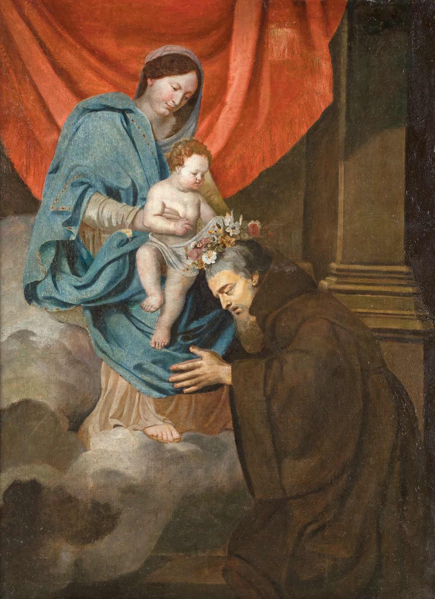 Pietro Antonio de Pietri (attribuito), Madonna col Bambino e San Felice da Cantàlice olio su tela, 110x84