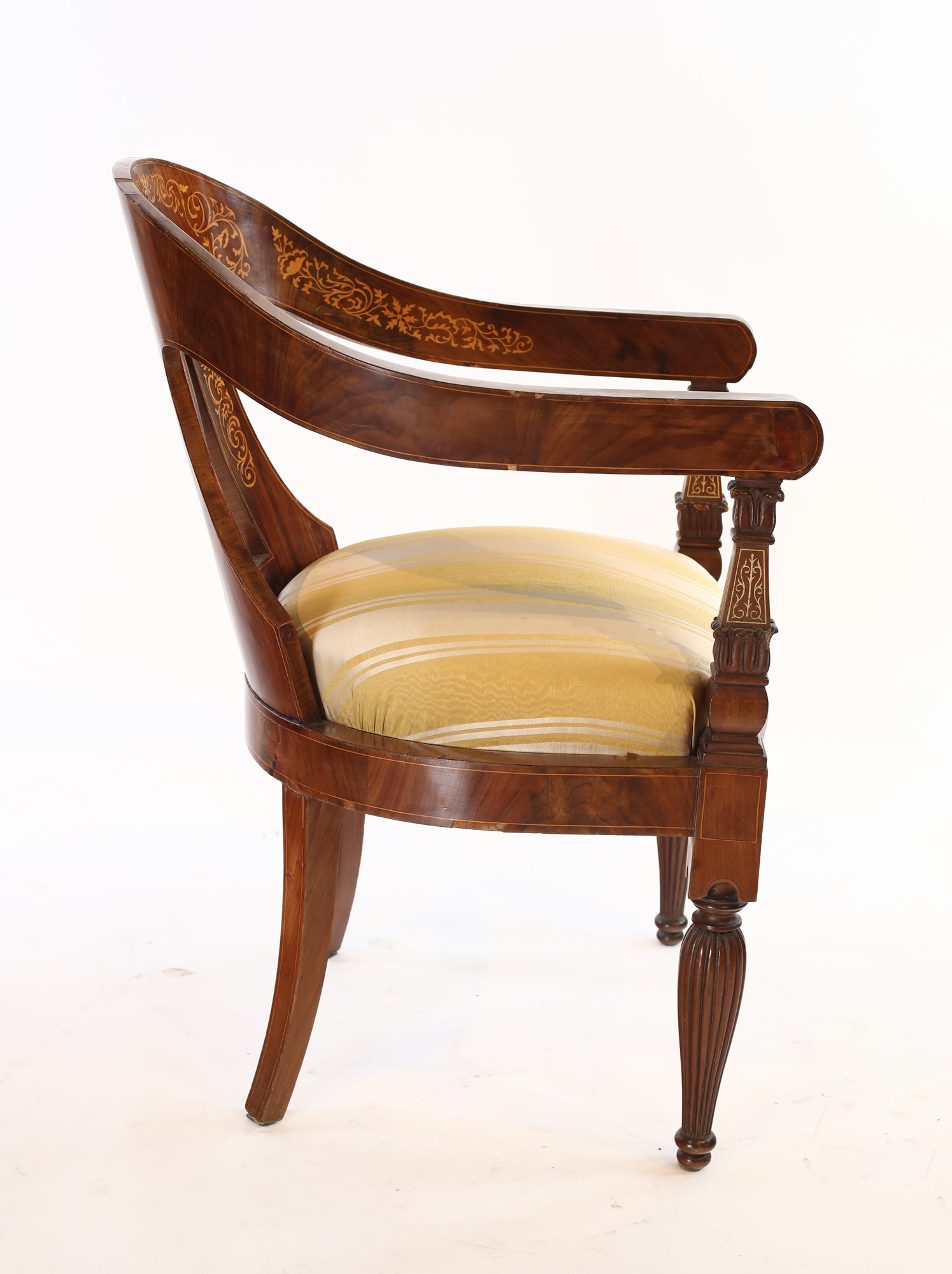 Lotto 123 | Sei poltrone di linea avvolgente in palissandro con intarsi in acero, Napoli,...
