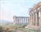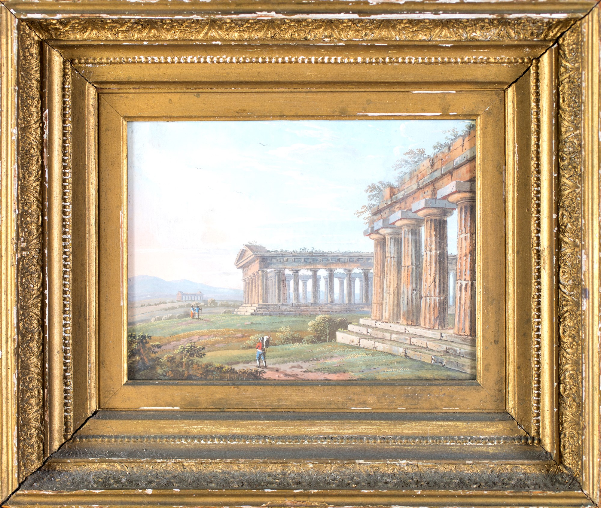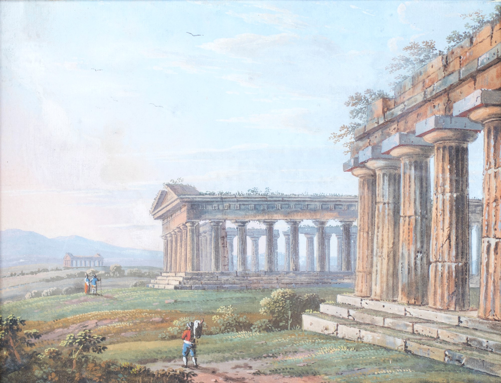 Pittore del XIX secolo, Veduta dei templi di Paestum acquerelli su carta, 22x30