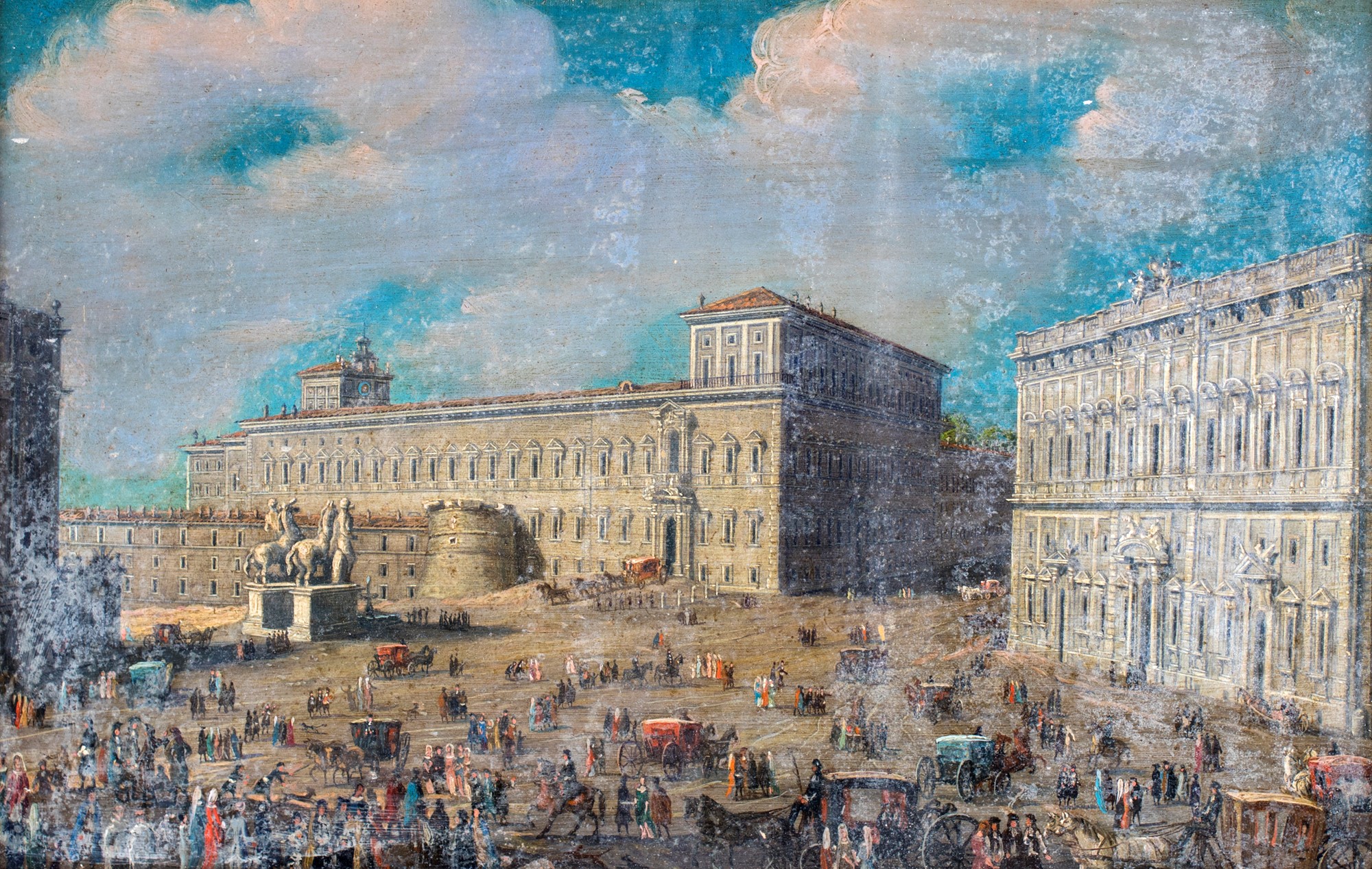 Pittore del XIX secolo, Veduta della piazza e del palazzo del Quirinale a...