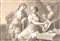 Antonio Zucchi, Tre figure in un interno - scena di conversazione Provenienza: già Galleria W. Apolloni Arte Antica Roma, come da etichetta al versobistro, guazzo e biacca su carta, 18,5x27x5