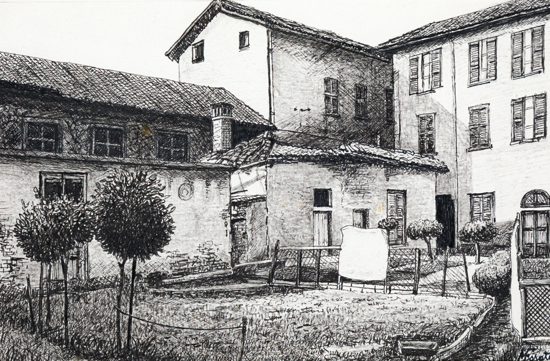 MARIO FOSSATI (1918-1999) - Brianza. Besana - cortile, 1988