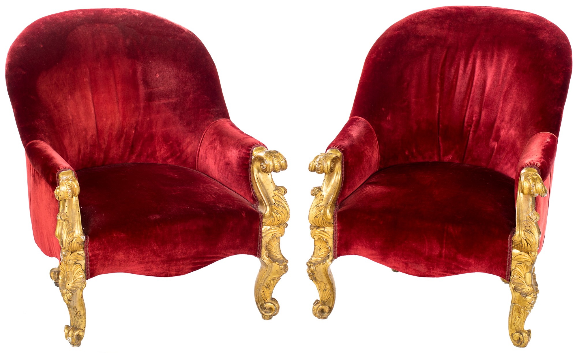 Coppia di poltrone a pozzetto in legno dorato, XIX secolo F2, , 91x70x70