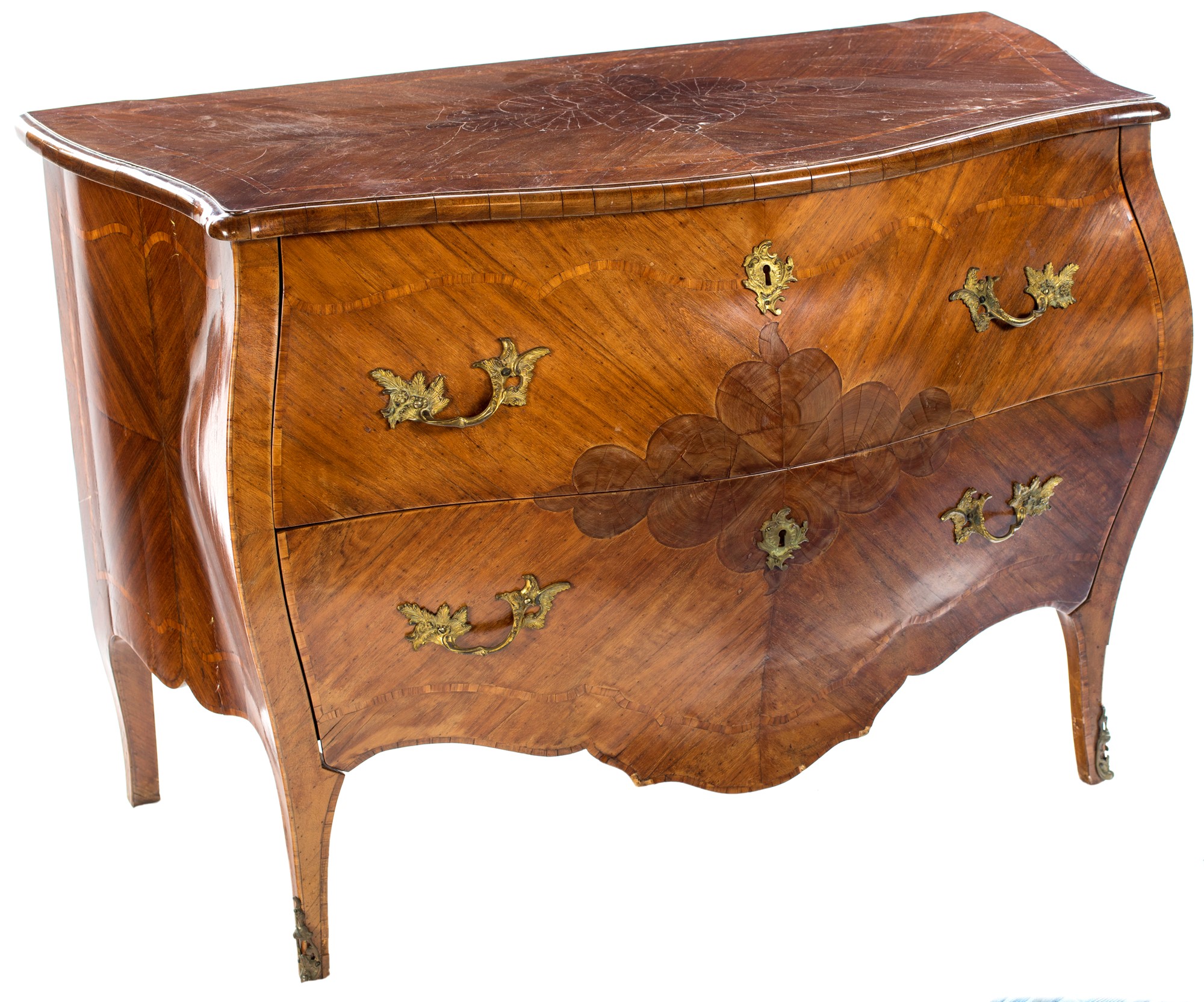Cassettone in mogano con filettature ed intarsi in legno di rosa, Genova XX...