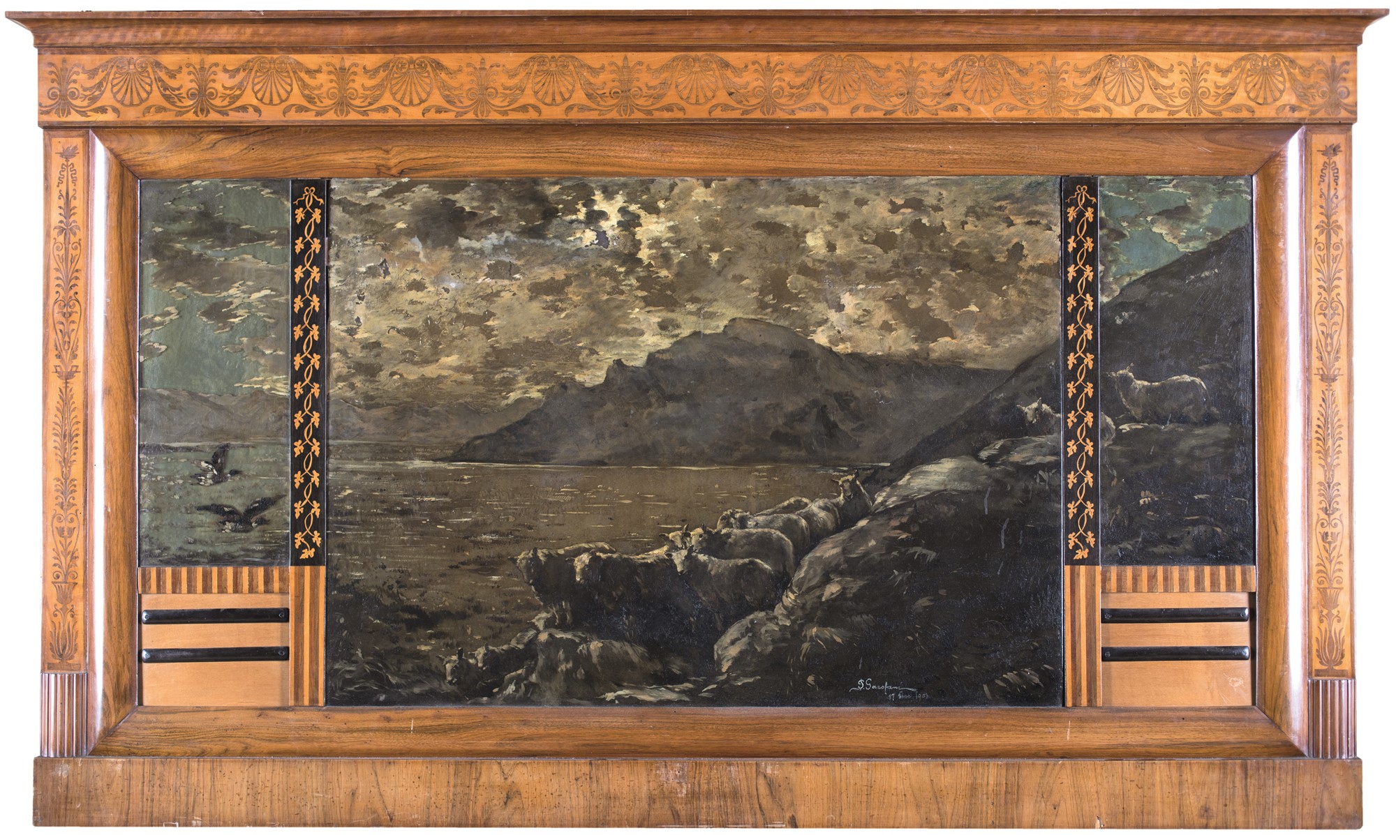 Caminiera in legno intarsiato, inizi del XX secolo F2, , 108x182