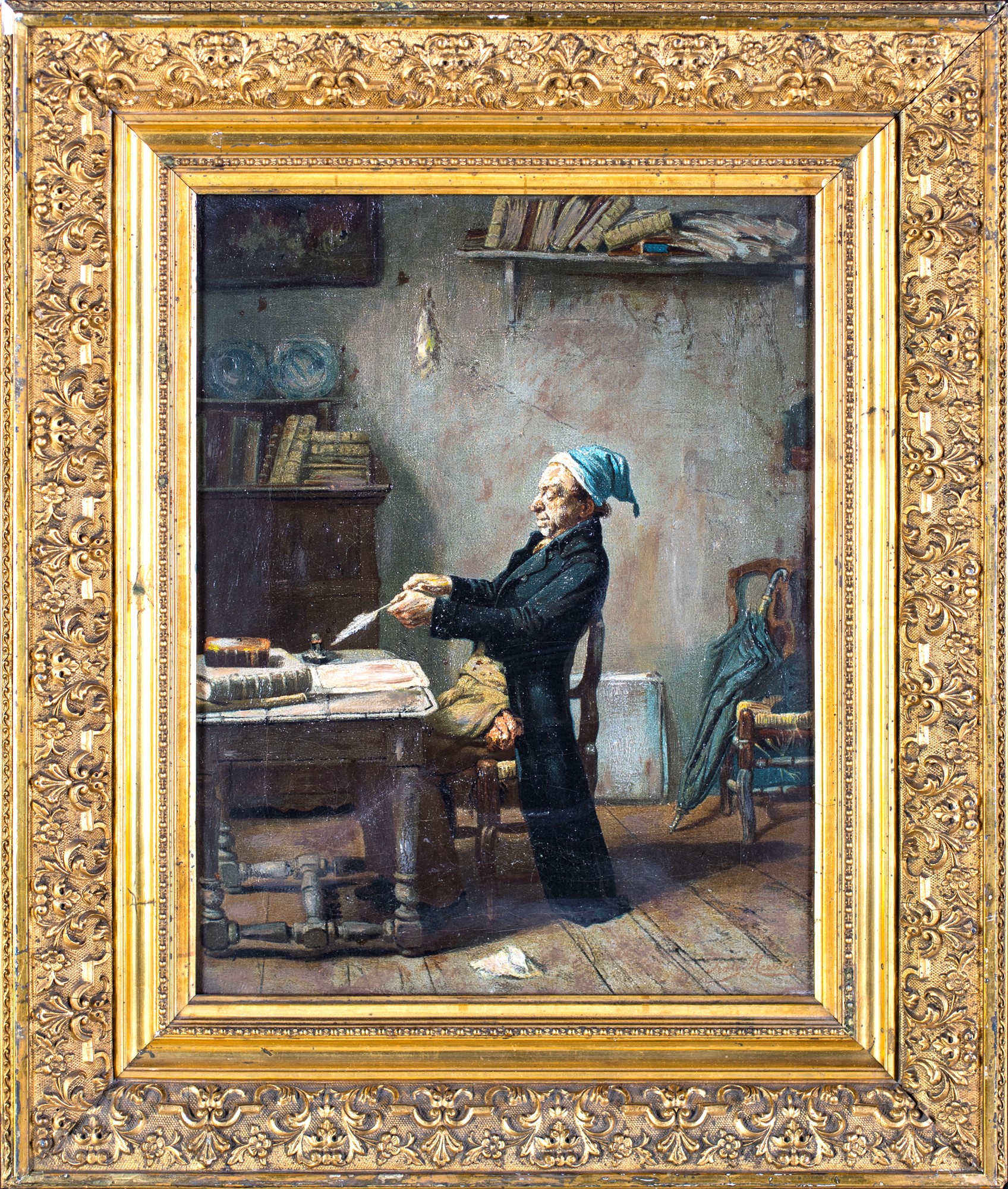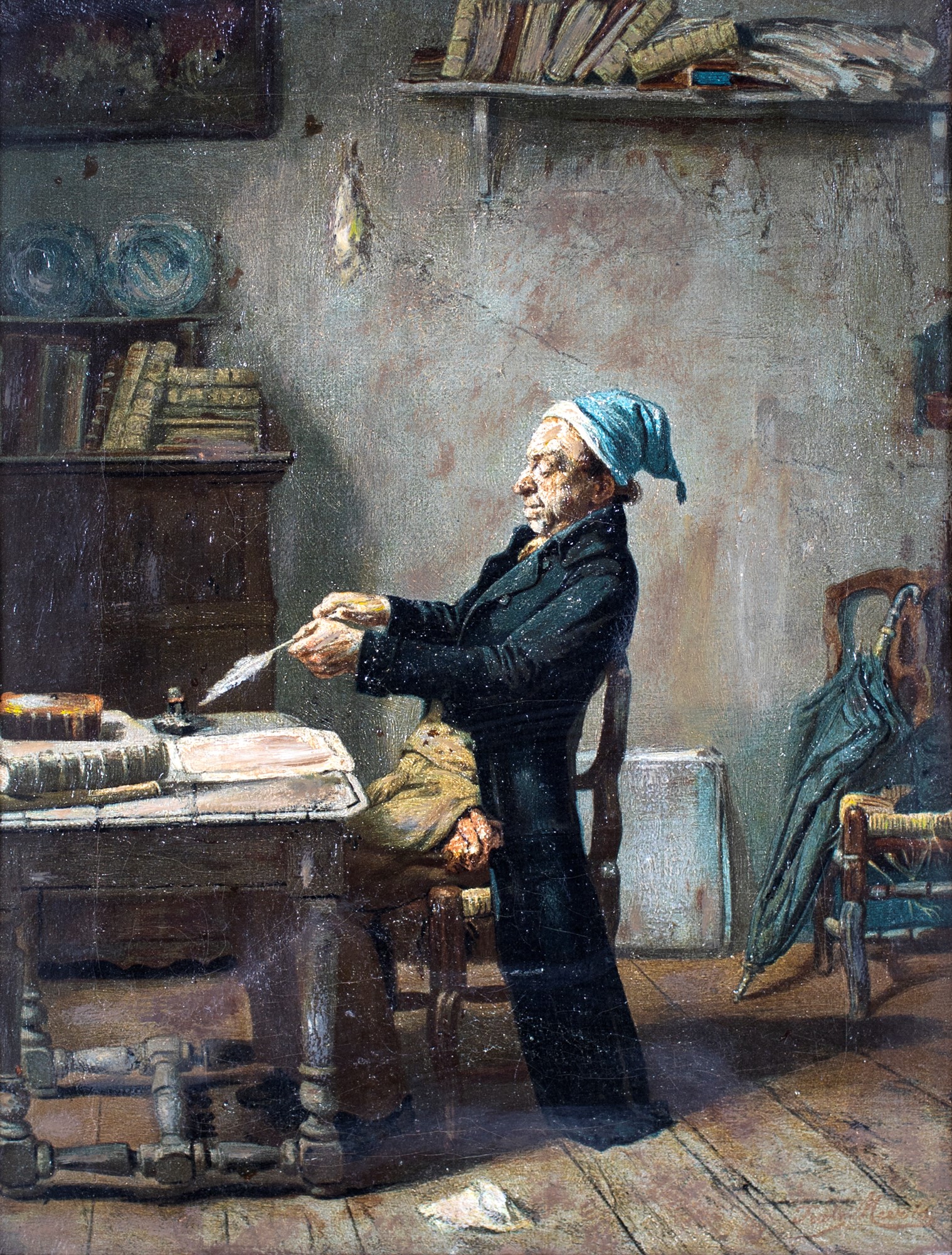 Scuola tedesca del XIX secolo , Lo scrivano F2, olio su tela, 40x31