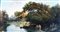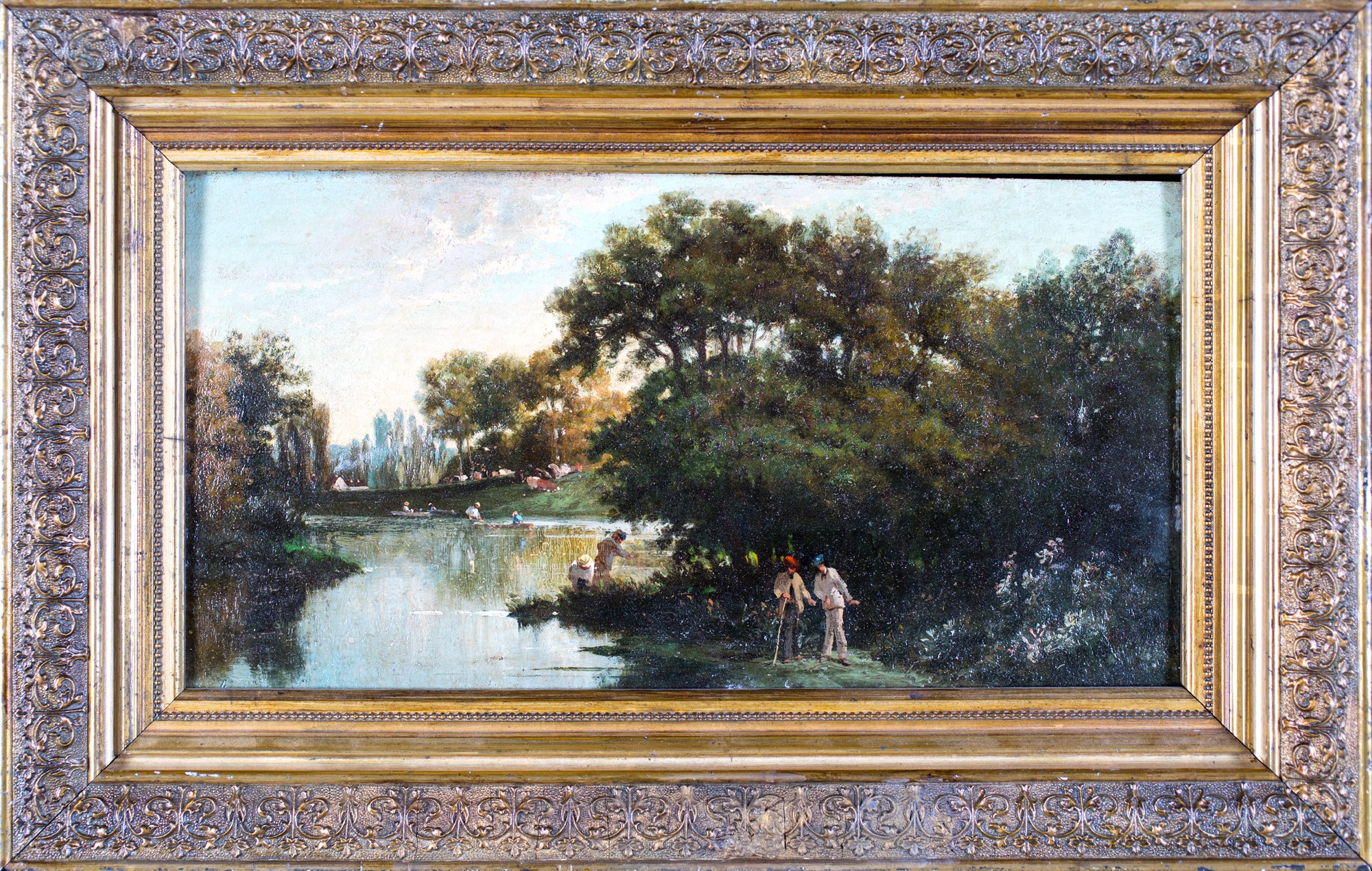 Pittore francese del XIX secolo , Parco con stagno e figure F2, olio su...