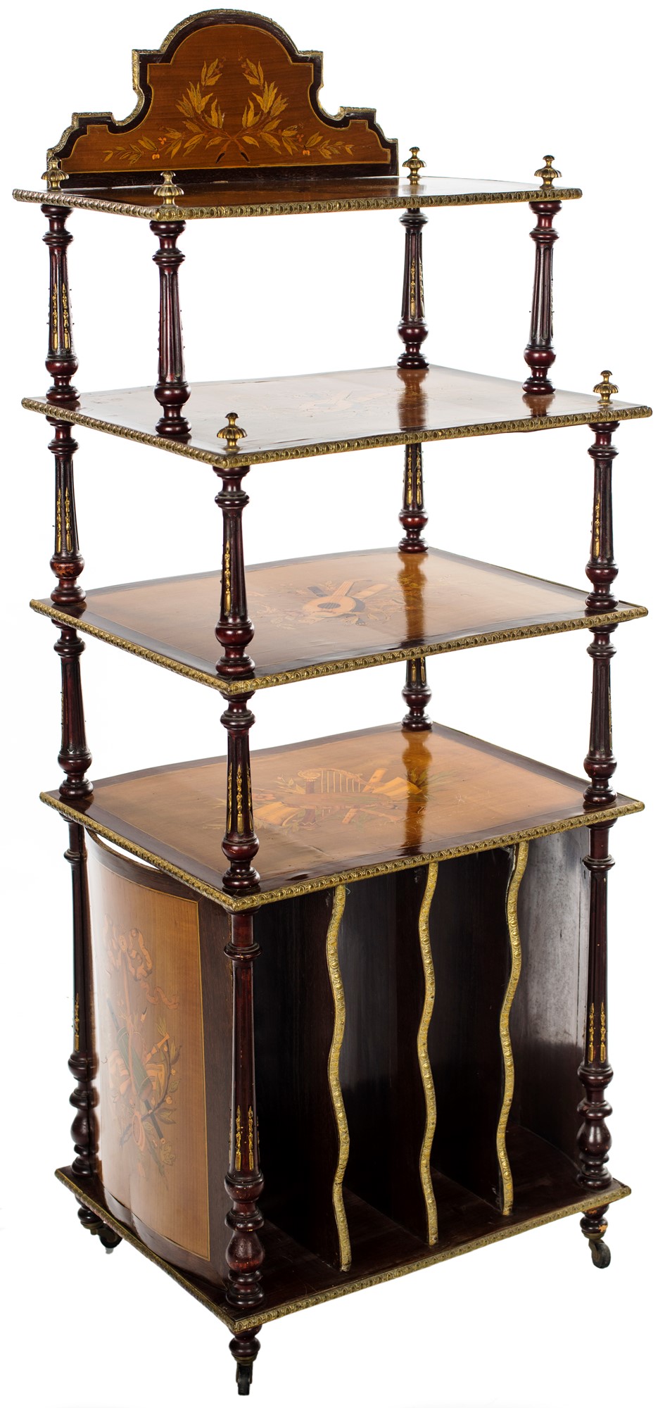 Etagère intarsiata con strumenti musicali F2, , 123x46x37