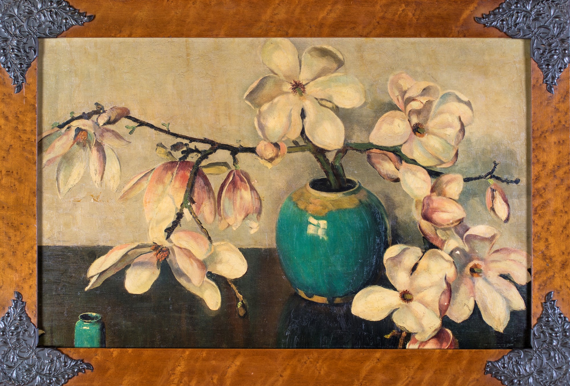 Pittore degli inizi del XX secolo , Vaso di magnolie F2, olio su tavola, 48x76