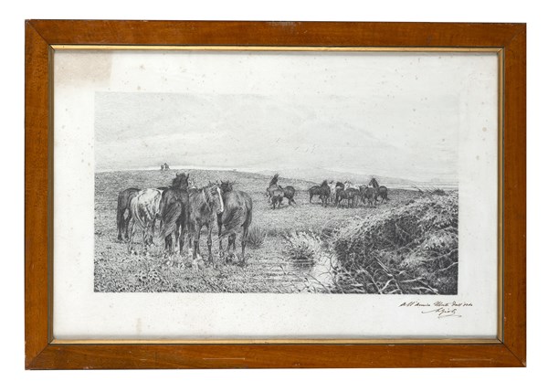 Lotto 302 | Luigi Gioli "Cavalli al pascolo" acquaforte (mm 240x450.5) Firmato e dedicato