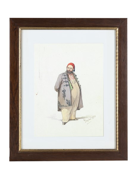 Amedeo Preziosi "Uomo turco col fez" 1850 acquerello su carta (cm 27x19) Firmato