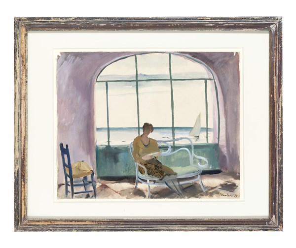 Enrico Paulucci "Figura femminile sul divano thonet" '29 tempera su carta (cm 33