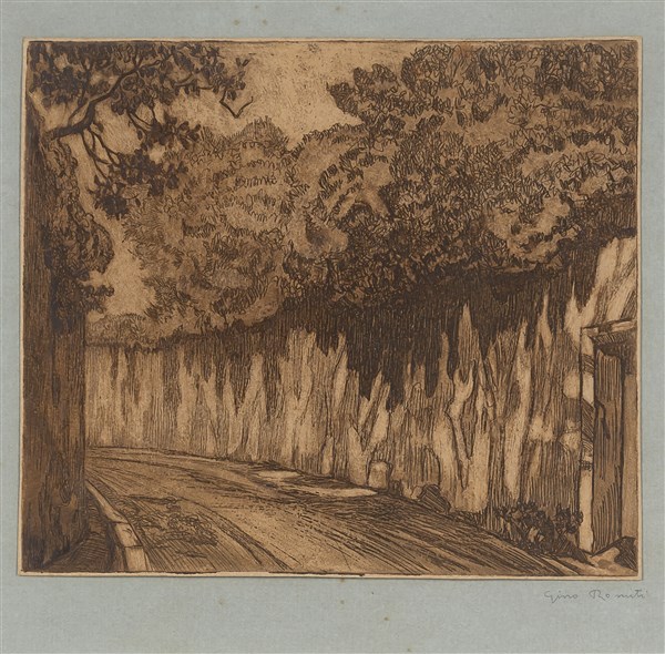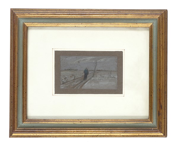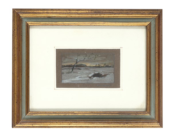 Lotto composto da due tecniche miste raffiguranti "Paesaggi innevati" di cui una firmata in basso a destra e un' acquaforte raffigurante "Viale" firmata in basso a destra (misure diverse)