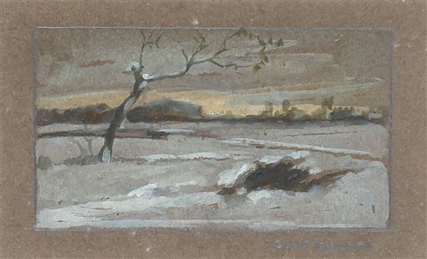 Gino Romiti Lotto composto da due tecniche miste raffiguranti "Paesaggi innevati