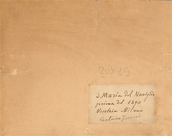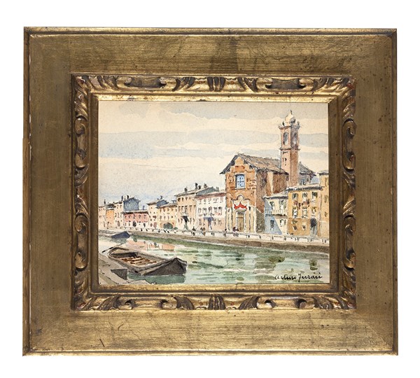 Arturo Ferrari "S.Maria al Naviglio, Vecchia Milano" acquerello su carta (cm 15