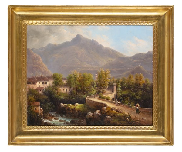 Maestro lombardo del XIX Secolo "Paesaggio" olio su tela (cm 33x42) In corni