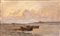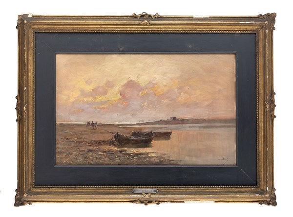 Carlo Follini "Zattere a riposo" olio su compensato (cm 26,5x44) Firmato in bas
