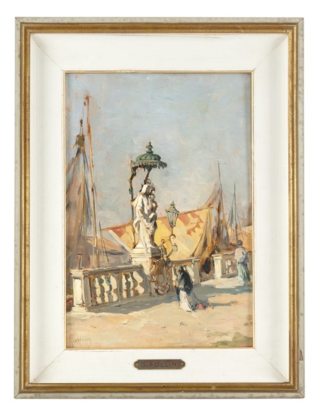 Carlo Follini "Chioggia" olio su compensato (cm 34x23,5) Firmato in basso a sin