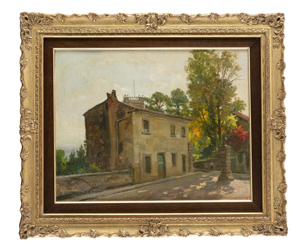 Vincenzo Ghirardelli "Casa di campagna" olio su compensato (cm 34x44) Firmato i