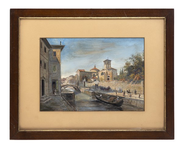 Lotto 360 | Ignoto del XIX Secolo "Naviglio di San Marco, Via Fatebenefratelli" tempera s