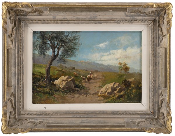 Ercole Gigante "Il ritorno" 1841 olio su tela (cm 26x39) Firmato e datato in bas