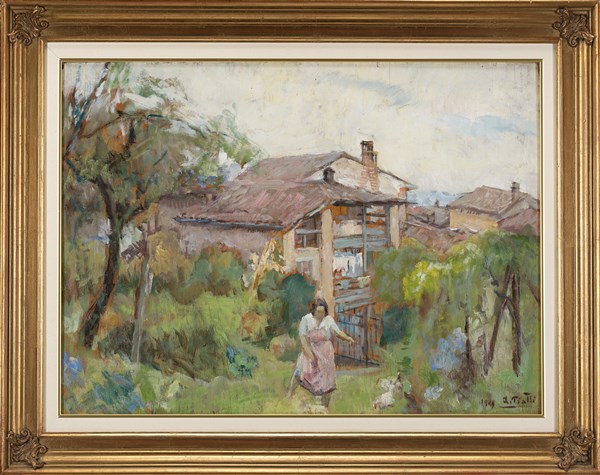 Antonio Piatti "Rustico" 1949 olio su compensato (cm 55x75) Firmato e datato in