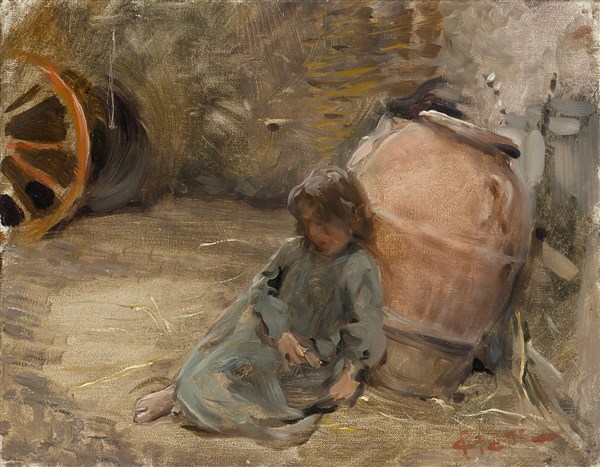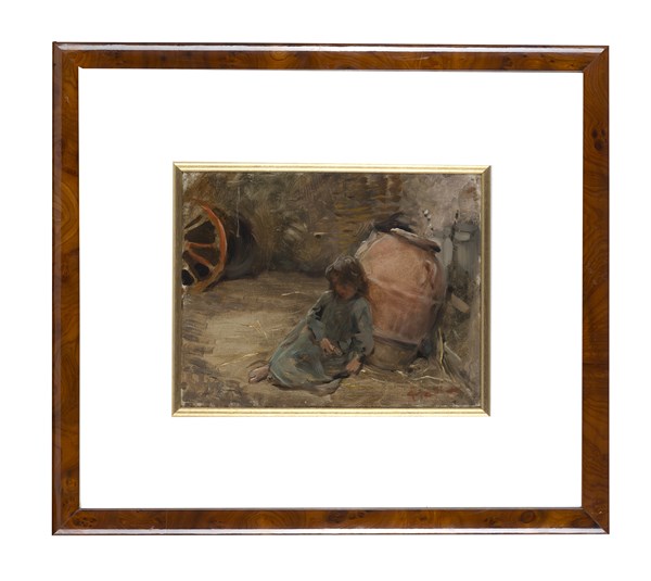 Cesare Ciani "La bimba" olio su tela (cm 23,5x30) Firmato in basso a destra In