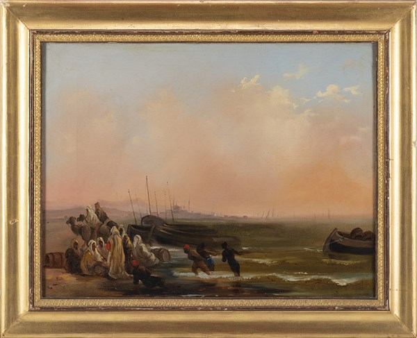 Lotto 383 | Giovanni Renica "Istanbul, il ritorno dei pescatori" olio su tela (cm 35x44) In