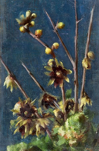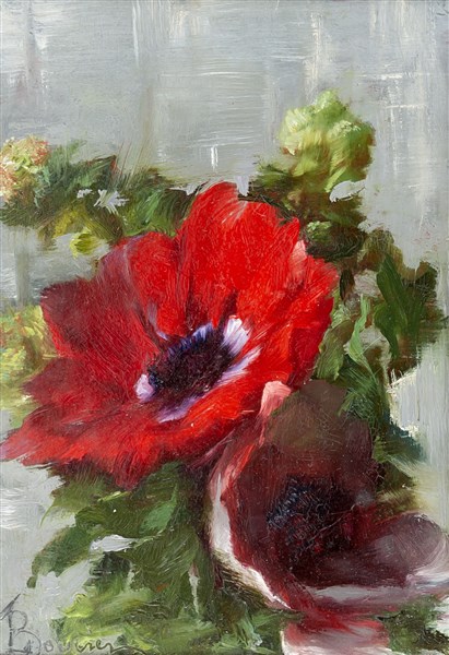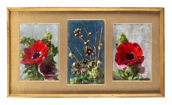Pietro Bouvier "Trittico dei fiori" olio su cartone (cm 17.5x12.5 e cm 20x12)