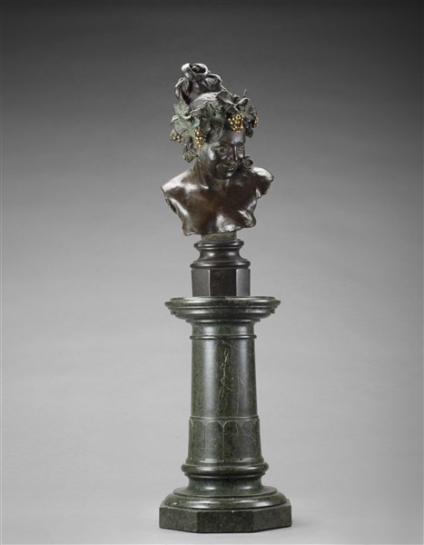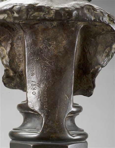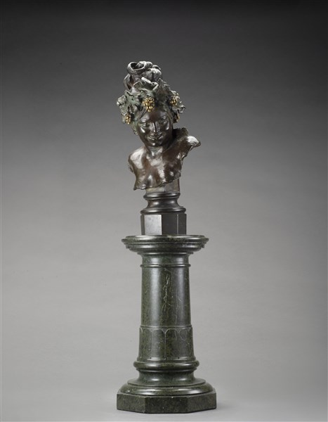Eugenio Maccagnani "La baccante" 1880 scultura in bronzo poggiante su base in ma
