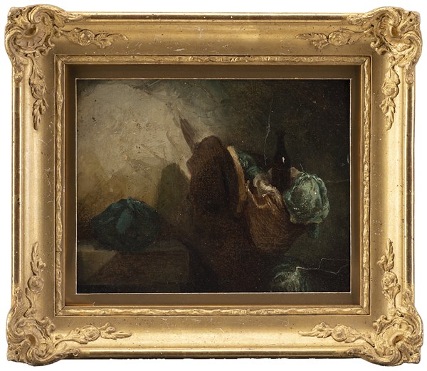 Domenico Induno "La cesta" olio su cartone (cm 19,5x24) Firmato in basso a sini