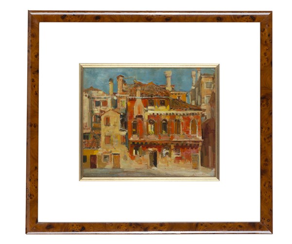 Attilio Achille Bozzato "La casa del fornaretto" olio su tavola (cm 25x30) Firm