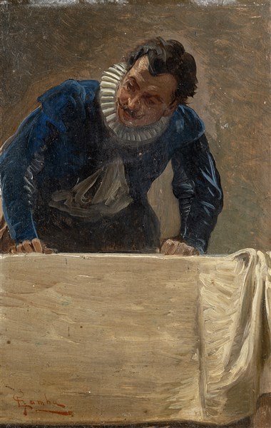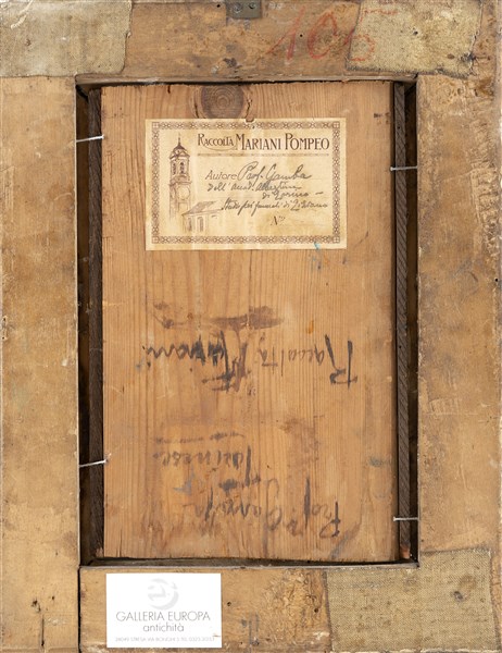 Enrico Gamba "Studio per I funerali di Tiziano" olio su tavola (cm 22x13,5) Fir