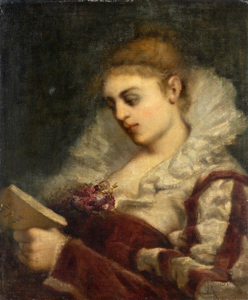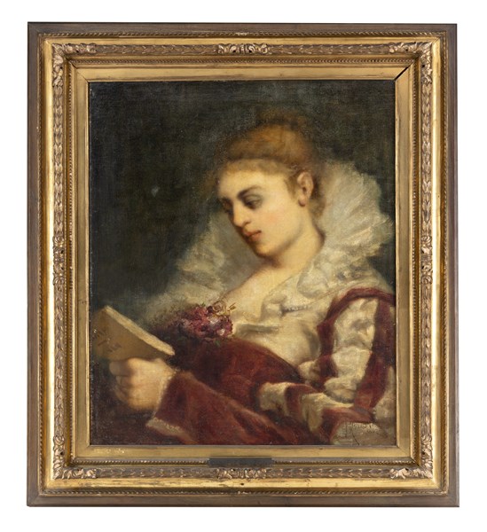 Daniele Ranzoni "Donna che legge" 1862 olio su tela (cm 61,5x50) Firmato e datat