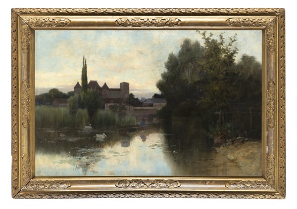 Alfred East "Château de Nemours" '83 olio su tela (cm 62x92) Firmato e datato in
