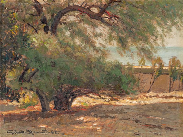 Gino Romiti "Costiera livornese" '62 Coppia di dipinti ad olio su compensato (cm