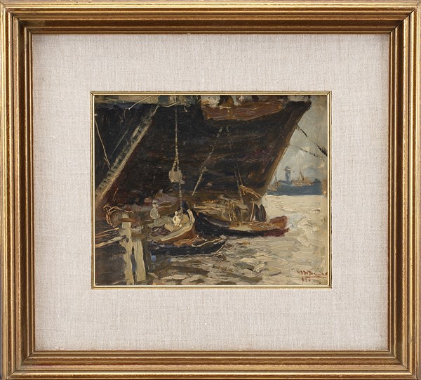 Domenico De Bernardi "Carico della zavorra alla Giudecca" Venezia, 1920 olio su