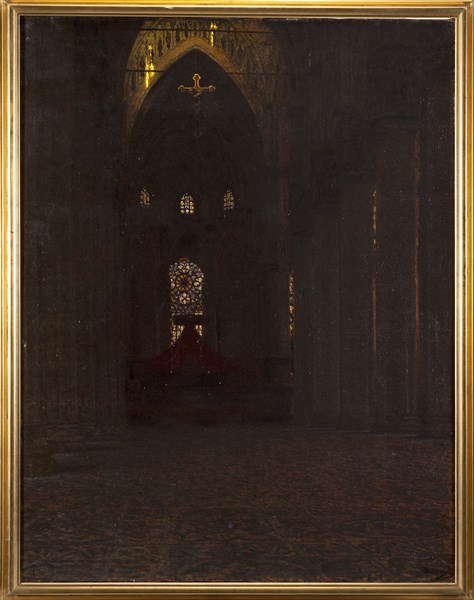 Giorgio Belloni "Trittico del Duomo 1" olio su tela (cm 131x101) Firmato e dat