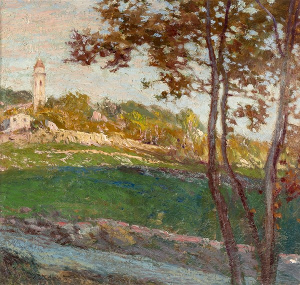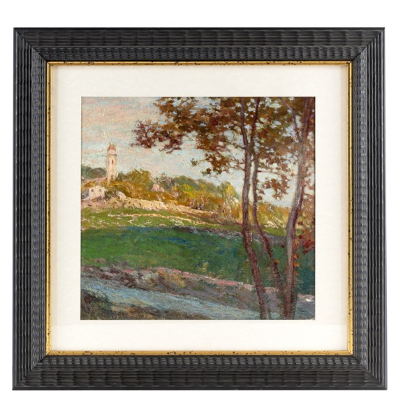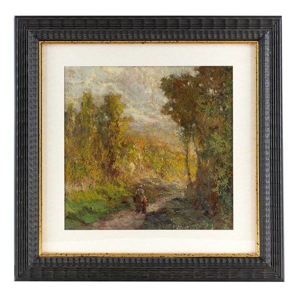 Leonardo Bazzaro "Chiesa di campagna" e "Il ritorno" Coppia di dipinti ad olio