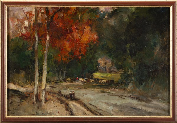Vittore Zanetti Zilla "Paesaggio d'autunno" 1918 olio su tela (cm 60x90) Firmato
