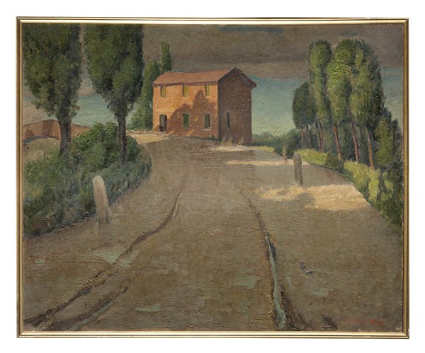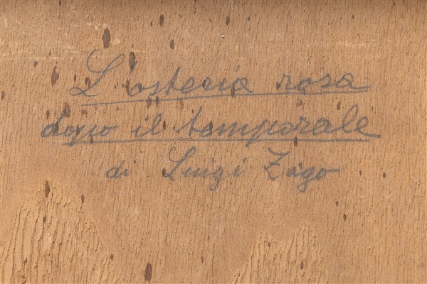 Luigi Zago "L'osteria rosa dopo il temporale" olio su compensato (cm 80x100) Fi