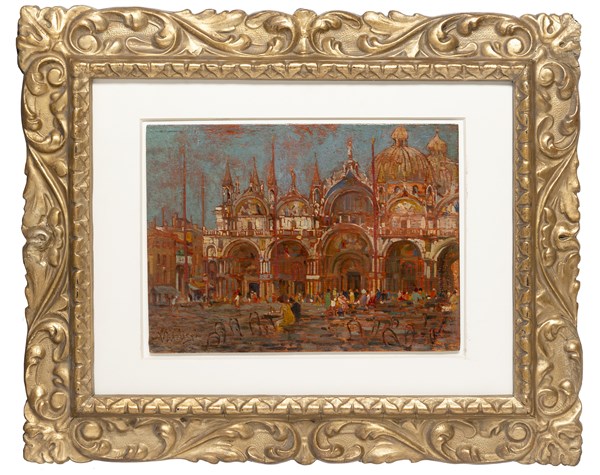 Ulvi Liegi "In piazza San Marco, Venezia" olio su compensato (cm 20,5x28) Firma