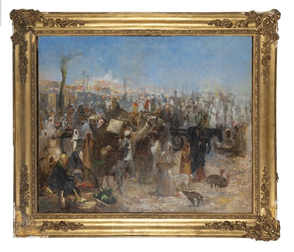 Alphons Leopold Mielich "Mercato orientale" olio su tela (cm 100x120) Firmato i