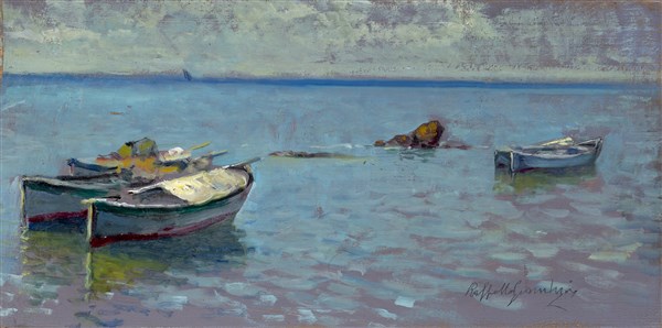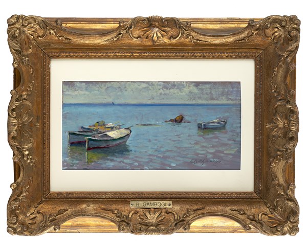 Raffaello Gambogi "Barche" olio su tavola (cm 13x26,5) Firmato in basso a destr