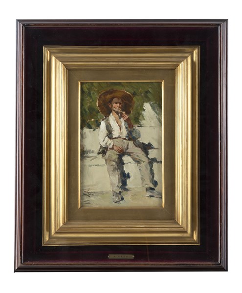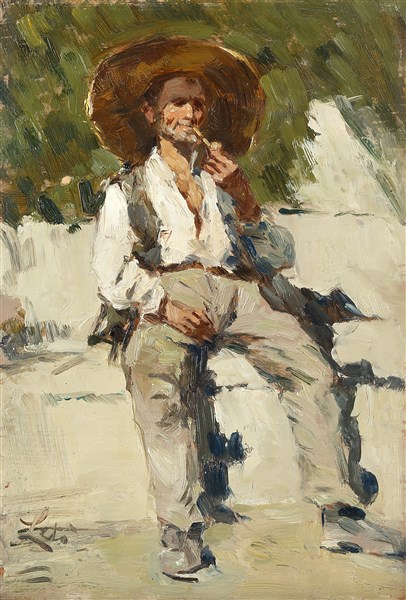 Antonio Leto "Pescatore" olio su tavola (cm 29x19,5) Firmato in basso a sinistr