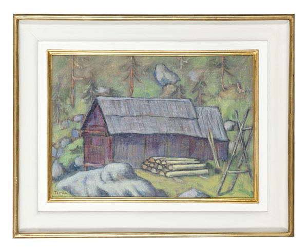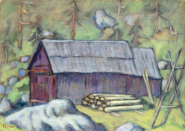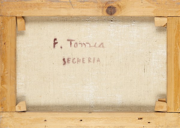Fiorenzo Tomea "La segheria" primi anni '50 circa olio su tela (cm 35x50) Firma