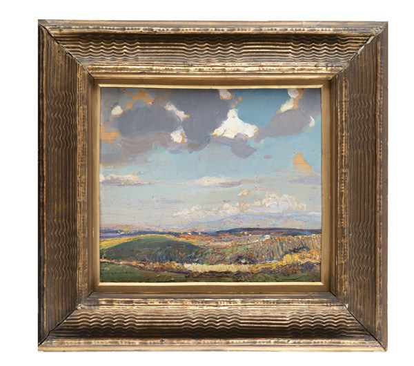 Andrea Tavernier "Paesaggio" olio su tavola (cm 28x37) Firmato in basso a sinis