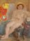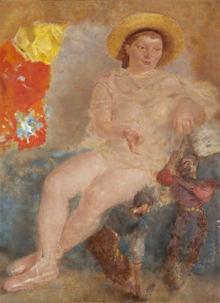Giovanni Romagnoli "Figura con marionette" olio su masonite (cm 107x77) Firmato