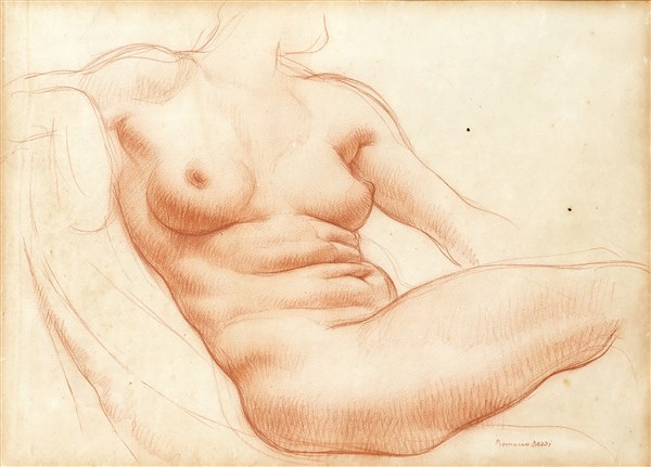 Romano Dazzi "Nudo" disegno a sanguigna su carta (cm 35x48) Firmato in basso a