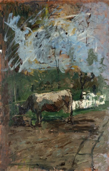 Al retro: studio raffigurante "Mucca all'abbeveratoio"